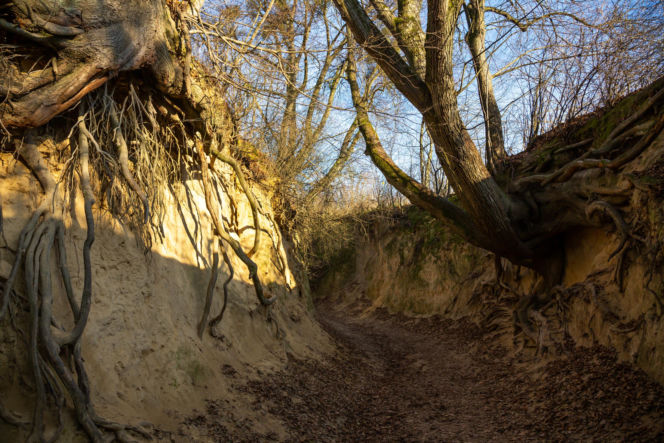 Kazimierz Dolny… od innej strony – zamiast rynku i bulwarów: wąwozy lessowe (Korzeniowy Dół, Norowy Dół), które wyglądają jak sceneria fantasy.