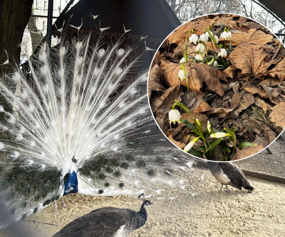 Choć tafla wody na lokalnym stawie nadal pokryta jest warstwą lodu, oznaką nadchodzącego ocieplenia jest bez wątpienia obecność pawi.