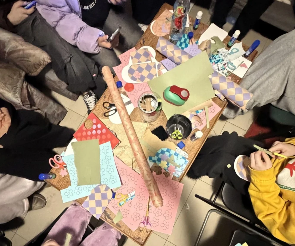 MM: W najbliższą sobotę 28 lutego w Lublinie będziemy miały takie fajne wydarzenie charytatywnego kolażowania. Będzie można przyjść i jako przynieść cegiełkę małą tabliczkę czekolady. Mamy bardzo dużo materiałów, mamy kolorowe papiery, ale mamy też takie archiwalne gazety z lat 80, więc naprawdę fajnie te kartki wychodzą. Zapraszamy każdego, nawet jeśli uważa, że nie ma talentu artystycznego. Mamy bardzo fajne materiały, więc nie trzeba absolutnie nic ze sobą przynosić. Wystarczy tylko przyjść i kilka słów od serca napisać na takiej kartce. Każde ręce do pomocy się przydadzą.